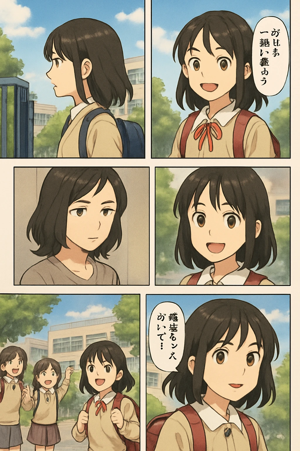新しい一日、勇気を持って友達の輪に飛び込む美咲。