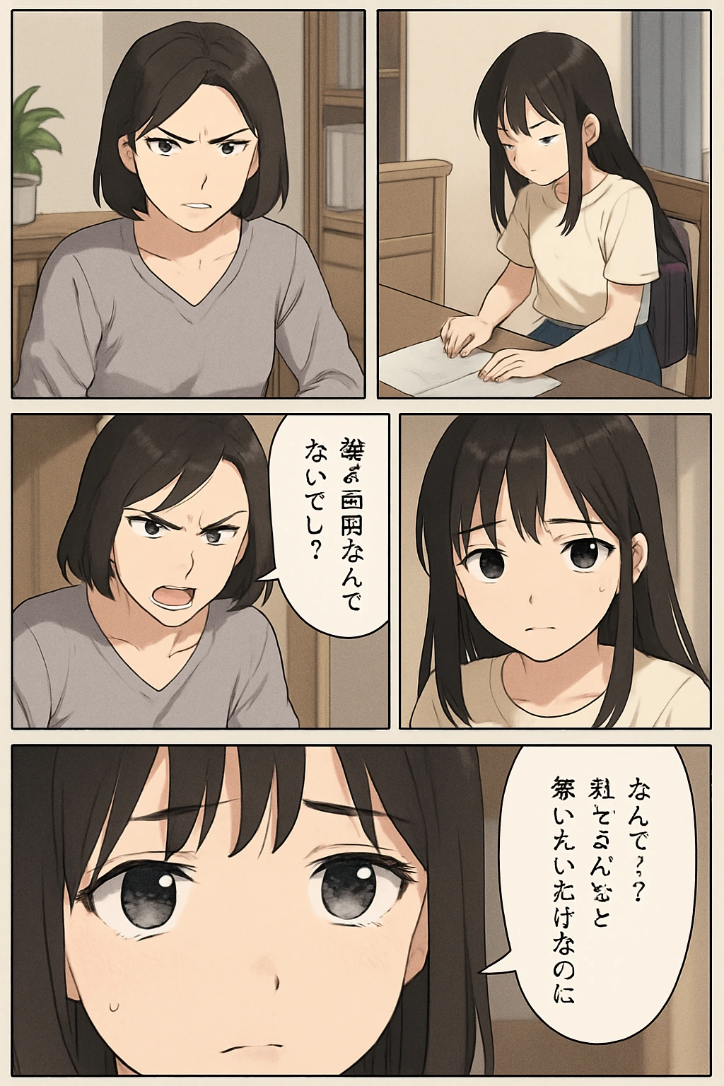 お母さん「遊ぶ時間なんてないでしょ。勉強しなさい!」 (美咲・心の声)「なんで…?私もみんなと笑いたいだけなのに…」