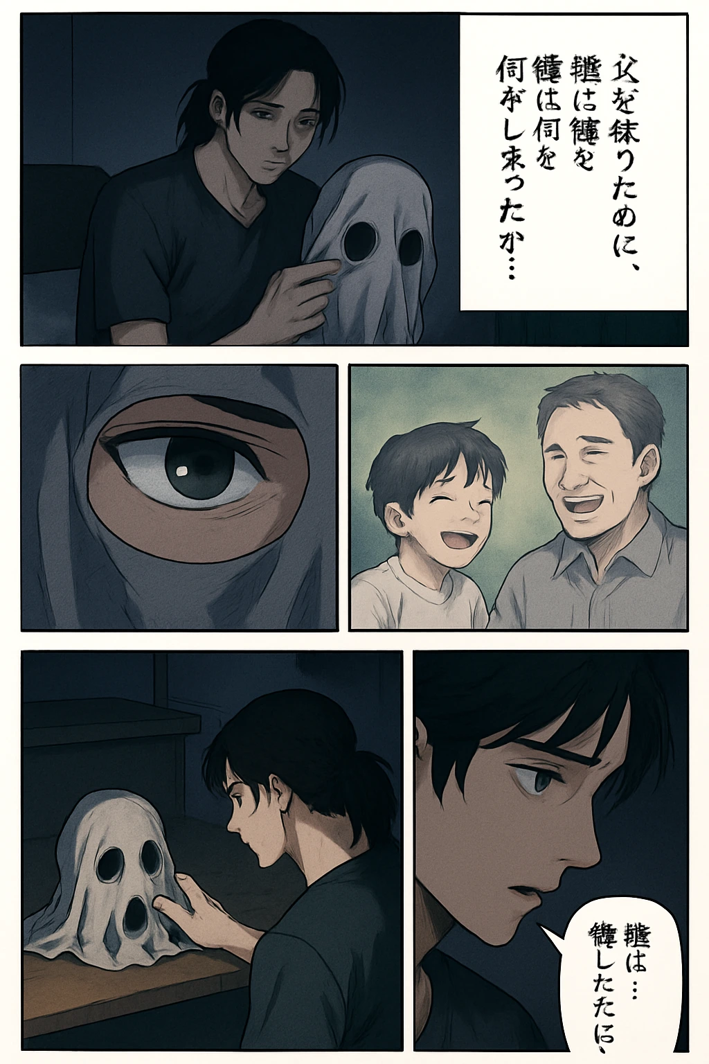 渉(モノローグ):『父を救うために、俺は何をしてしまったのか…』 渉(小声で):『僕は…何を壊したんだ…?』 ナレーション:『真実と虚構、その狭間で――』