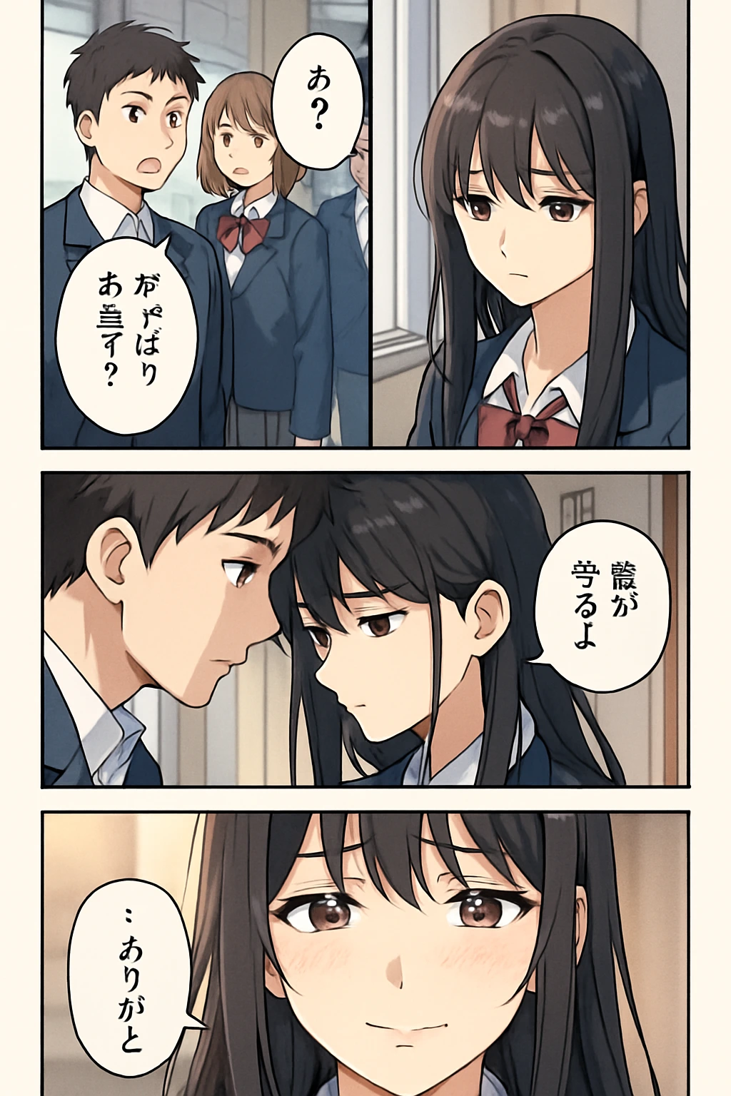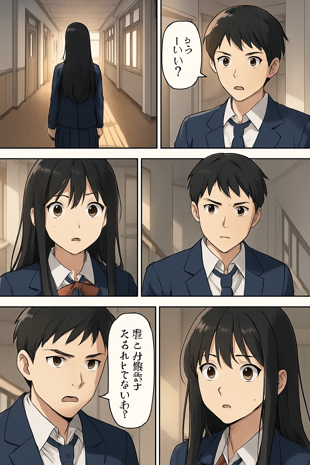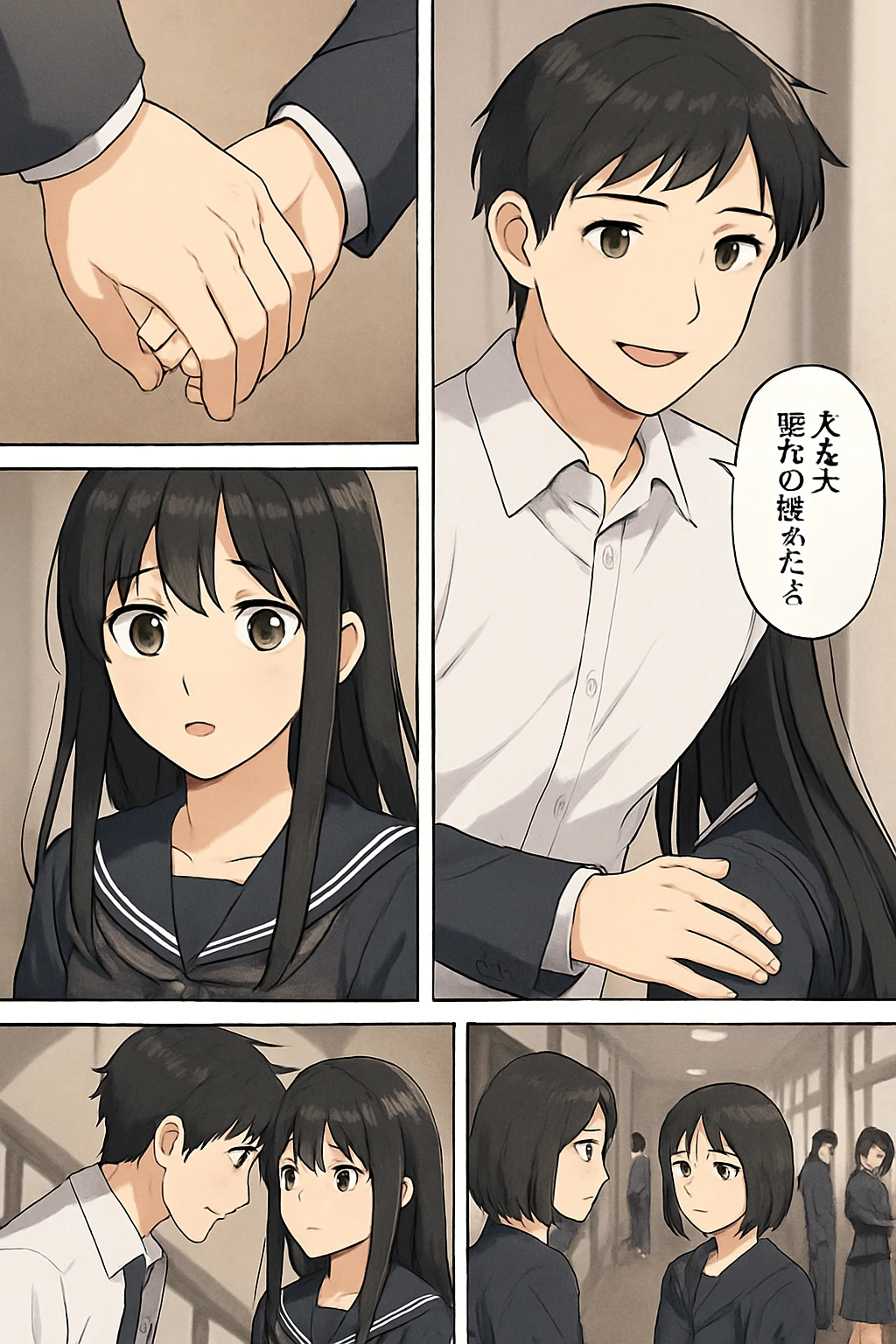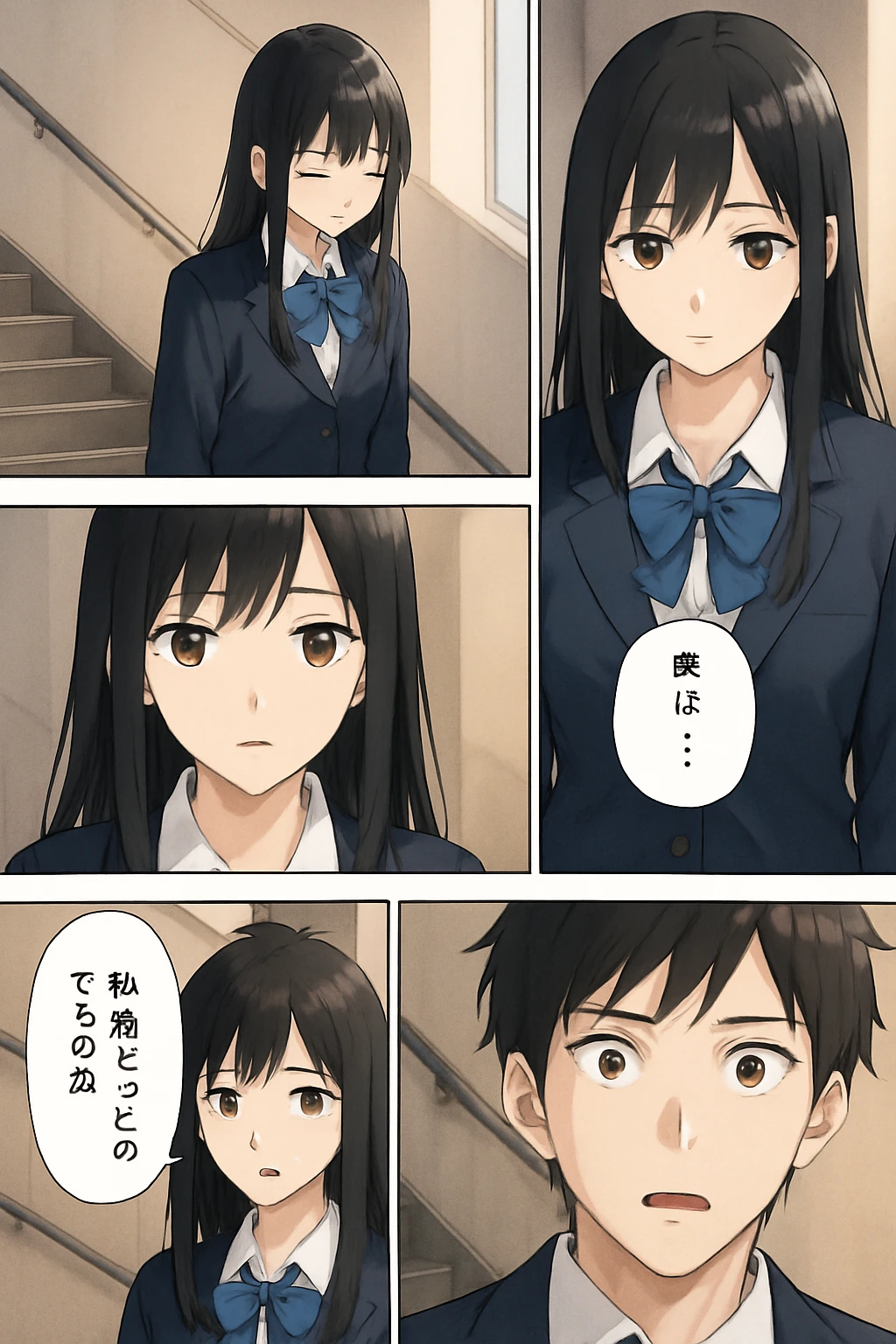 階段踊り場と廊下、二人の絆と周囲の変化。