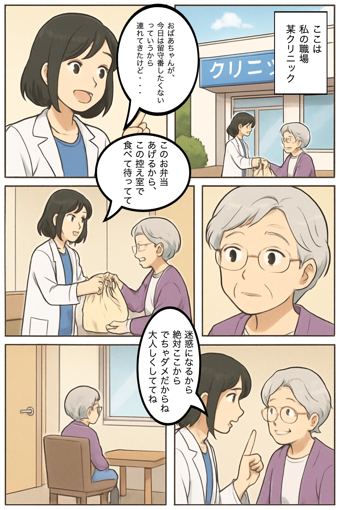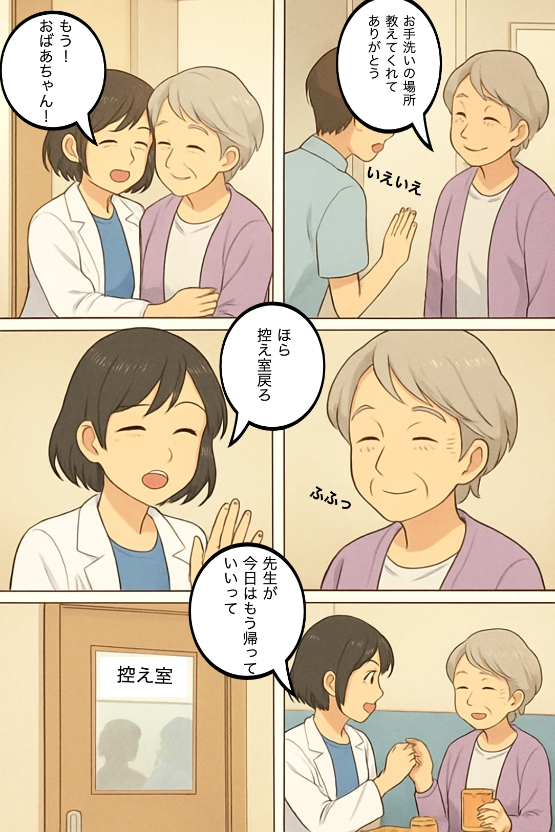 クリニックの朝、彩乃と祖母が登場し、控え室への案内。