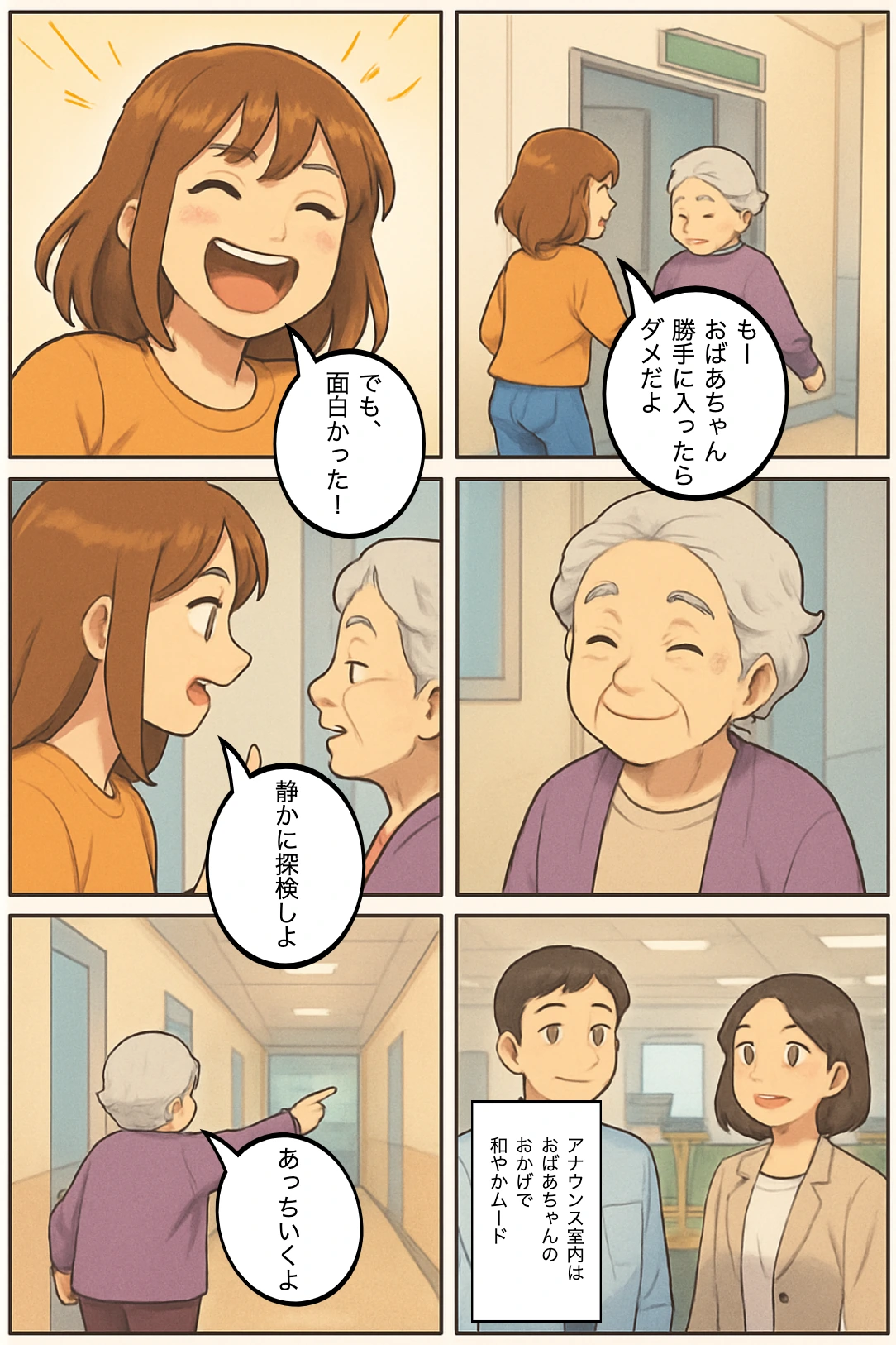 おばあちゃん「やっぱり、さなえと一緒は楽しいね」 さなえ「おばあちゃん、次は静かに探検しよ?」 おばあちゃん「ふふふ、約束できないかも」